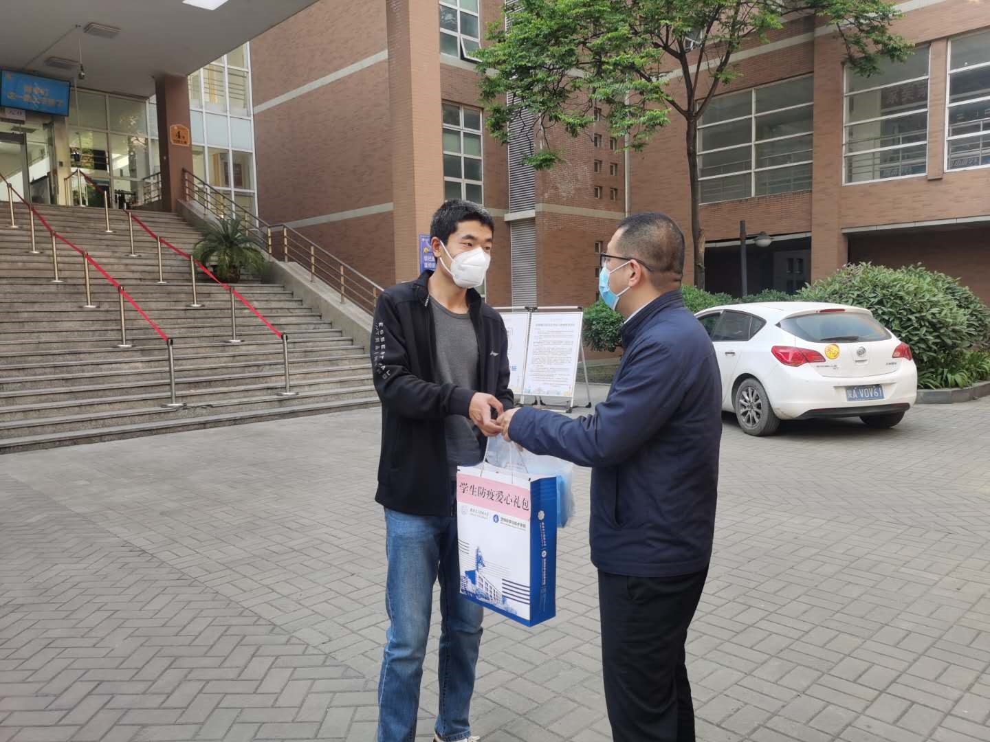 27日下午,空间学院党委书记朱文凯、执行院长李小平和其他学院领导班子成员、学院办公室负责人、毕业生辅导员来到学生宿舍看望返校学生,了解关心学生的返校情况,向第一批返校学生发放防疫消毒物资和水果食品等爱心礼包,传达学院关怀。朱文凯再三嘱咐同学们返校后务必遵守学校相关要求和公寓管理规定,坚持每日晨午检和宿舍消毒清洁,每日保持与家长和辅导员的联系,希望大家同学们利用难得的返校时光按时完成毕业设计和补考,潜心学习、提升自我。李小平与同学们亲切交流,欢迎大家回到阔别已久的大学校园,详细了解学生返校途中的交通状况,叮嘱大家做好防疫消杀工作,希望返校学生珍惜最后在学校的美好时光为大学生活画上圆满的句点,同时把美好的校园景色和积极向上的正能量传递给其他尚未返校的同学。