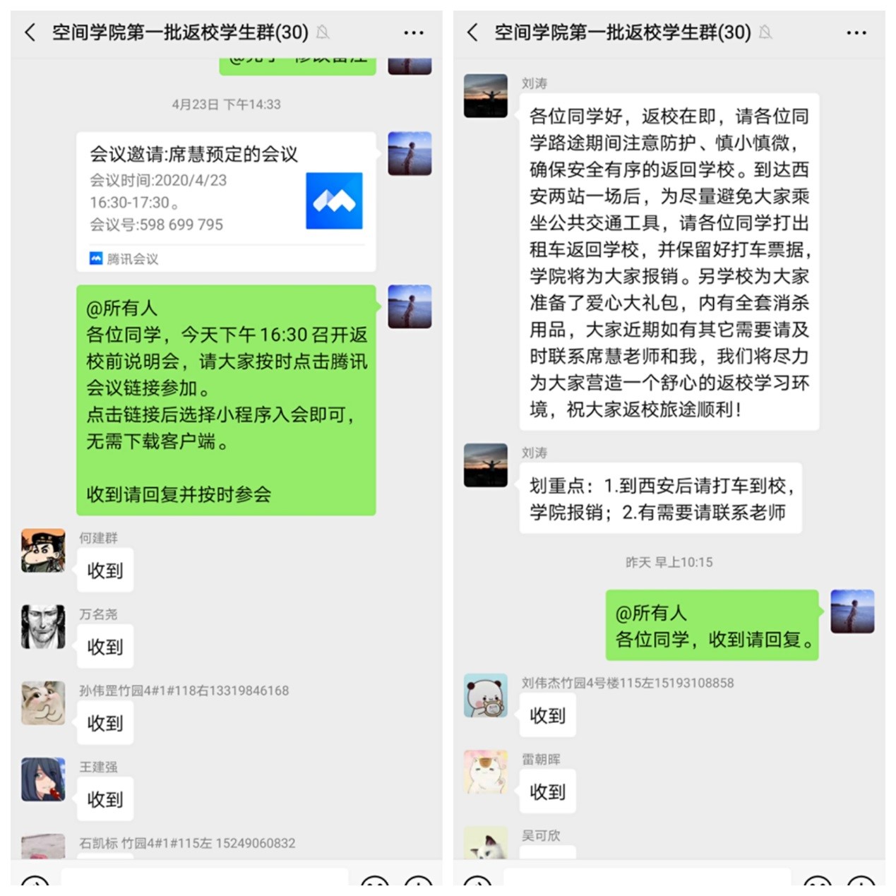 (通讯员 席慧)暮春四月,学子返校,4月27日,空间科学与技术学院第一批返校学生回到了熟悉的西电校园。按照学校、学院各项返校复学工作部署,学院在返校前通过在线视频会、微信群等明确情况、了解轨迹、教育到位,返校中全程关注学生返校动态,返校后为学生及时送上学校防疫礼包和学院爱心礼包,确保学生返校各环节工作有序落实。