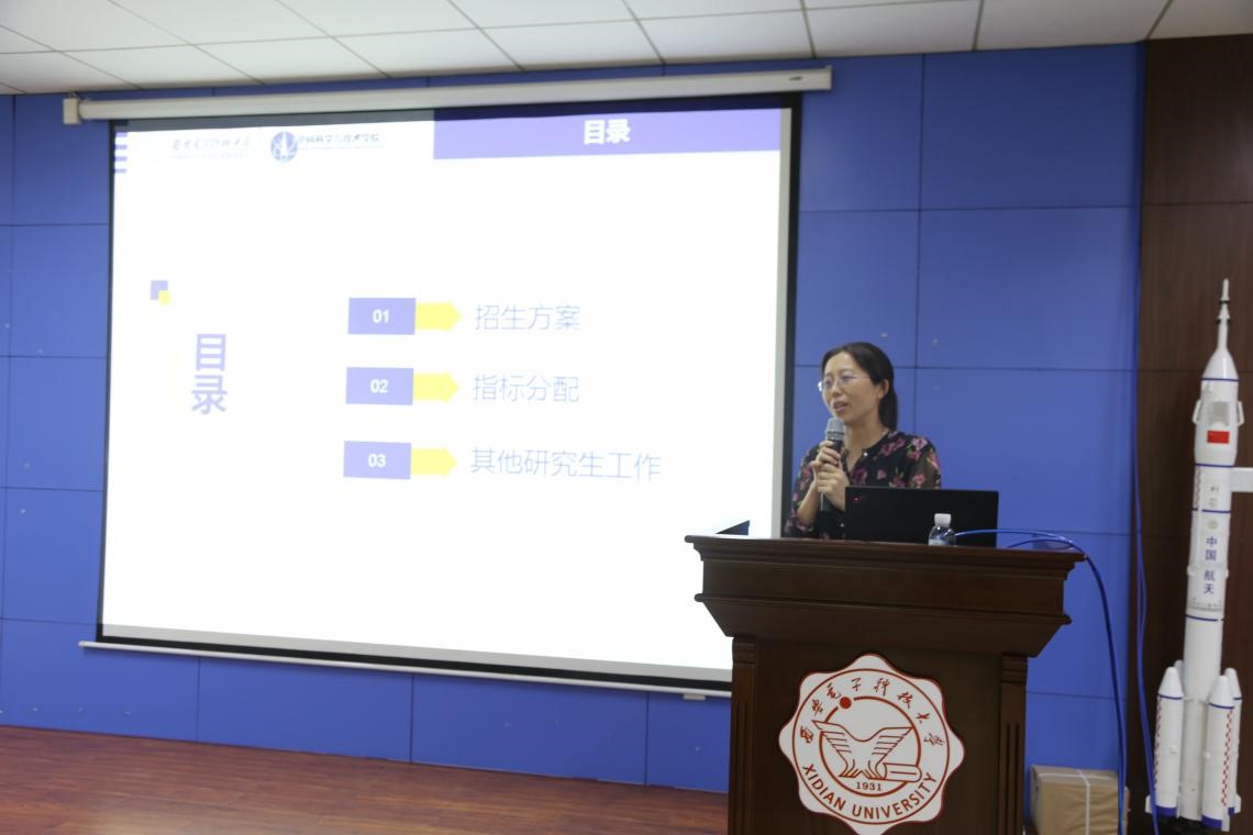 院长助理冯冬竹对2020年硕士研究生招生工作进行了详细总结。向导师们汇报了今年疫情防控特殊时期学院招生工作具体实施方案和导师指标分配细则,详细解剖了本次招生过程中反映出的问题及未来工作建议。对标学校各项工作要求,对今年其他研究生工作进行了梳理,号召每一位导师积极参与。