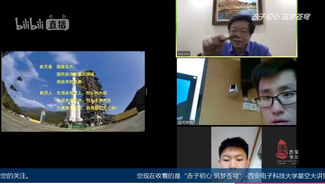 此次线上报告既是学校第四届航天文化节系列活动之一,也是学校“奋斗的我 最美的国”主题宣传教育活动的重要一环,活动借助“西电青年”B站和“西电空间院”抖音等新媒体平台邀请全校青年学子共聚云端,聆听包为民院士讲述中国航天“筚路蓝缕、以启山林”的艰辛历程和“攻坚克难、勇攀珠峰”的卓越成就。此次活动进一步激发了青年学子仰望星辰大海,探索浩瀚宇宙的信心与决心,引导青年学子为将我国建设成为航天强国贡献智慧和力量。