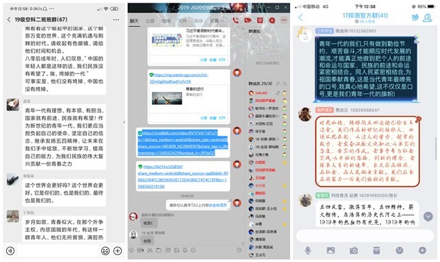 习近平总书记(通讯员 郑瑞博 田丽山)“新时代中国青年要继承和发扬五四精神,坚定理想信念,站稳人民立场,练就过硬本领,投身强国伟业,始终保持艰苦奋斗的前进姿态,同亿万人民一道,在实现中华民族伟大复兴中国梦的新长征路上奋勇搏击。”在五四青年节到来之际,习近平总书记向全国各族青年致以了节日的祝贺和诚挚的问候。空间科学与技术学院团委利用线上平台组织学院全体团员青年深入学习近平总书记对青年的寄语,并开展交流讨论,引导广大团员青年将习近平总书记的系列讲话精神内化于心,外化于行。