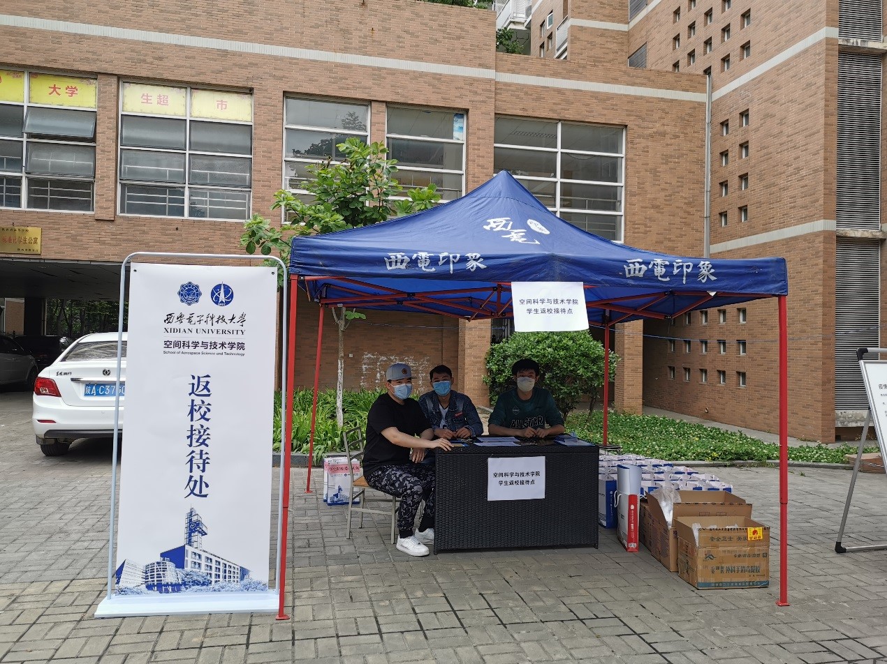 为应对第二批返校学生人数较多、到达时间较分散等特点,学院在竹园宿舍区域竹园1号楼、2号楼下空地设置空间科学与技术学院学生返校接待点,第一批返校的学生担任返校接待志愿者,向学生发放包括口罩、消毒液等防疫消杀物资的防疫包和包括水果、牛奶、饼干等日常食品的空间学院爱心礼包,并叮咛返校后注意事项。