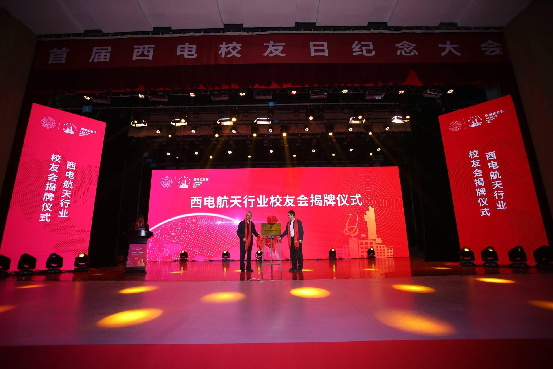 10月19日上午,西安电子科技大学航天行业校友会在北校区大礼堂正式揭牌成立。校长杨宗凯与航天行业校友会执行会长、中国火星探测任务工程总设计师张荣桥为航天行业校友会揭牌。