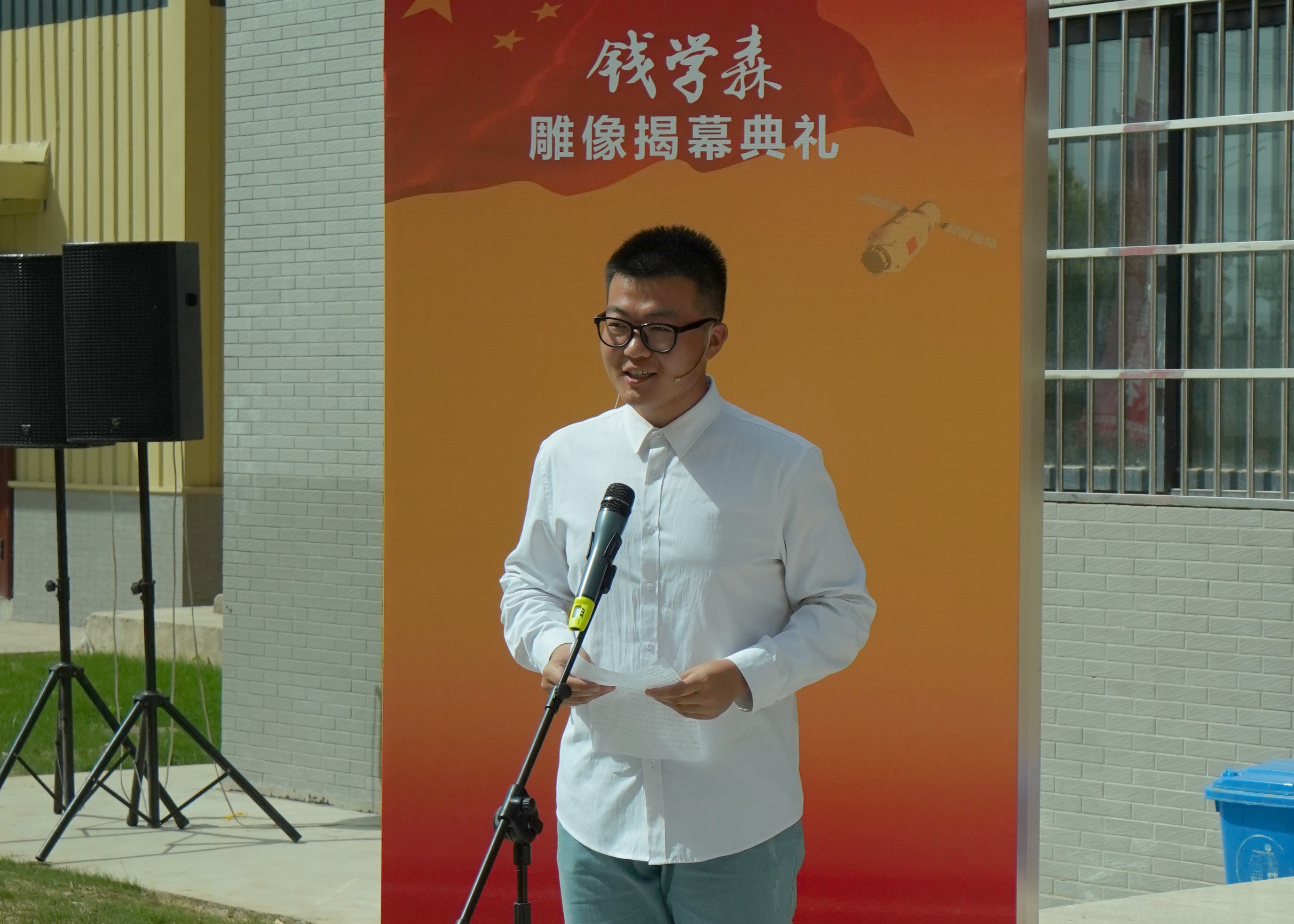 学生代表楚昊宁在钱老雕像前致辞
