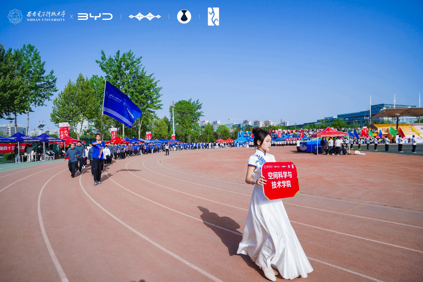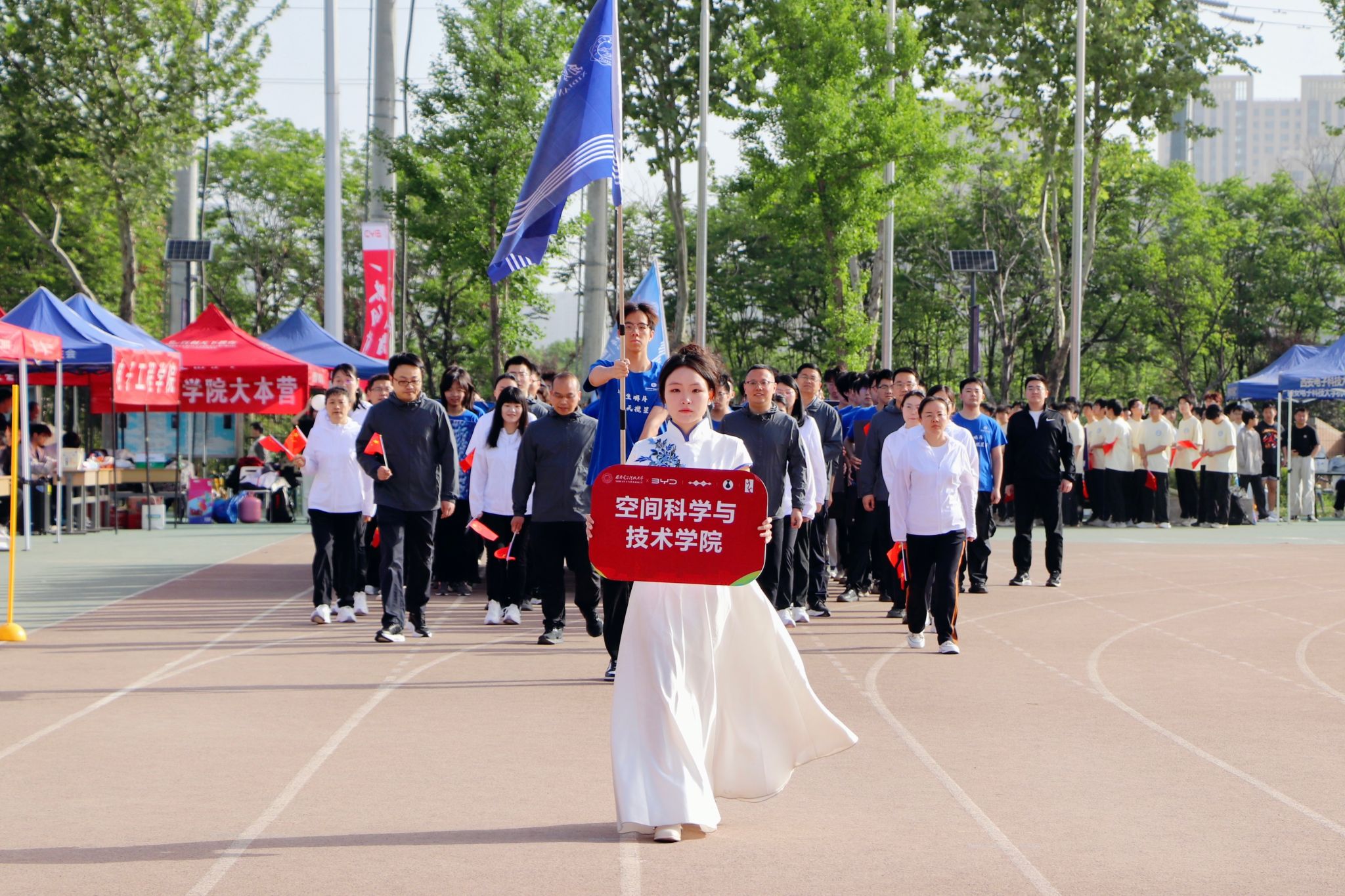 4月23日上午,西安电子科技大学第四十五届运动会在南校区北田径场开场。哨声吹响,一场迸发青春力量的体育盛会拉开序幕。空间科学与技术学院师生代表步伐矫健、意气风发地步入赛场。