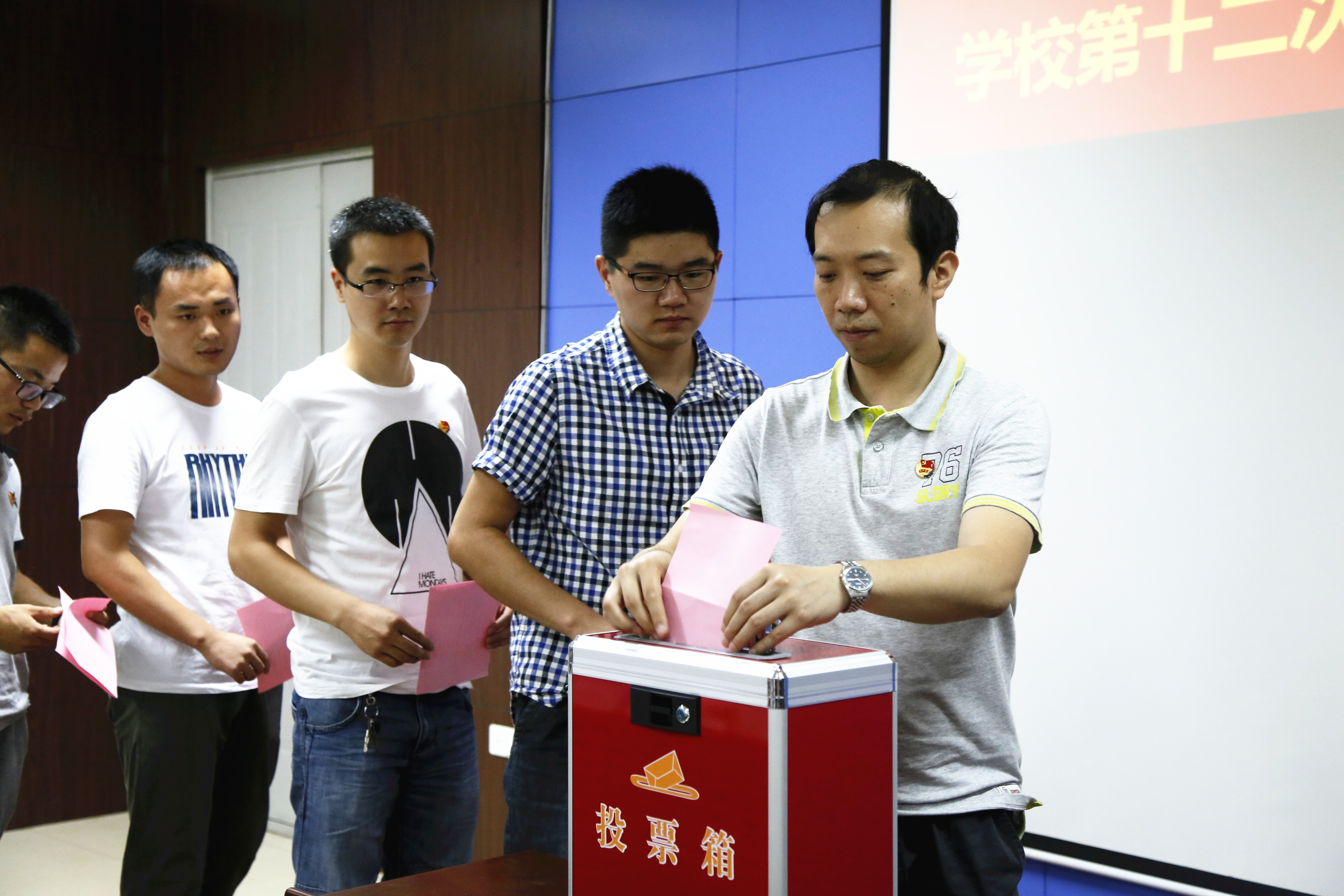 首先宣读了学校第十二次党代会代表选举办法,全体参会人员全票通过了选举办法以及从各支部推荐出的计票人与监票人。随后总监票人吴微介绍了十一名教职工候选代表与两名学生候选代表的基本情况,计票人与监票人为参会党员发放选票,全体党员采取无记名投票的方式逐一在票箱内投入了自己庄严的选票。