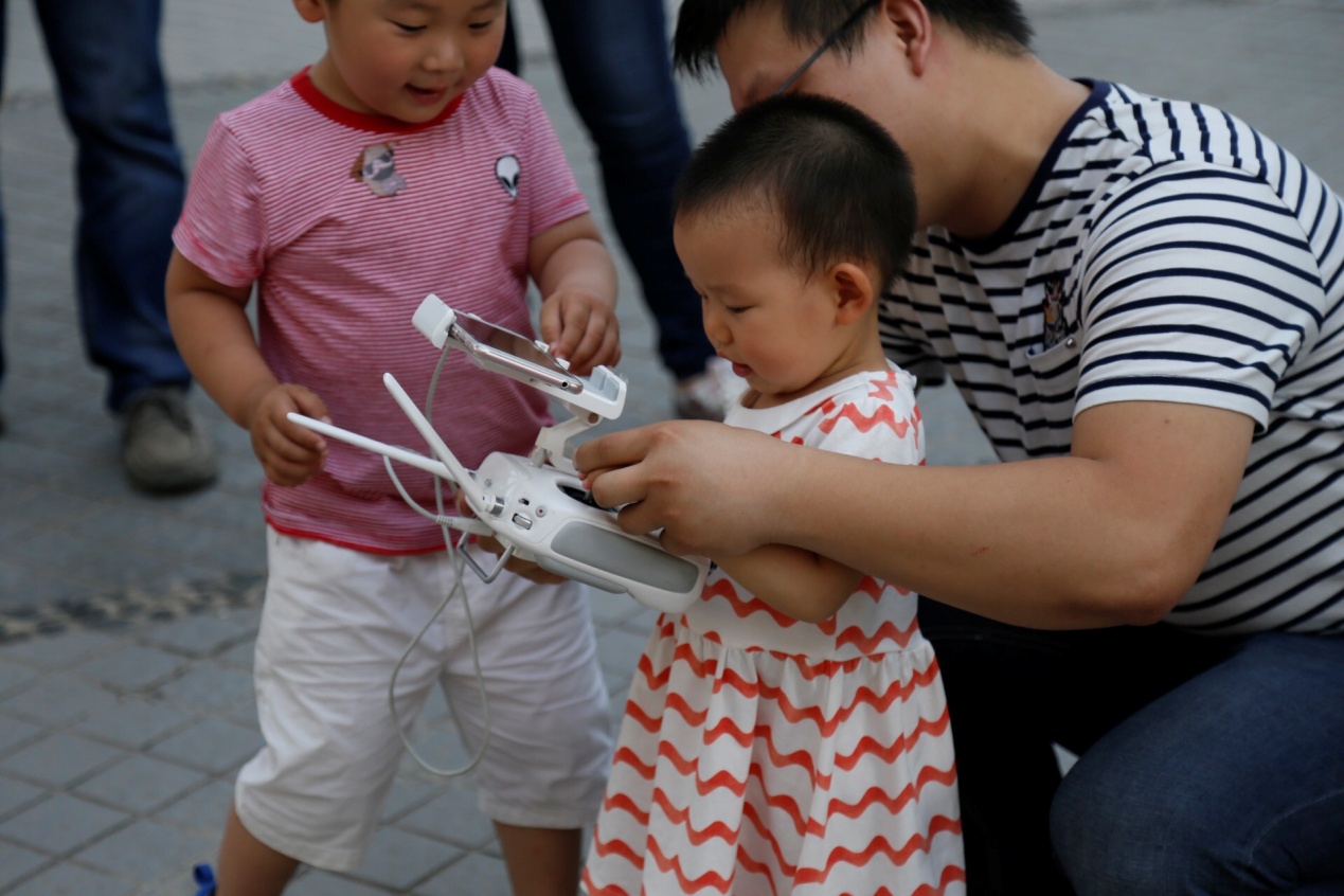 随后家长与小朋友们在学院无人俱乐部同学们的带领下,共同体验了无人机飞控。