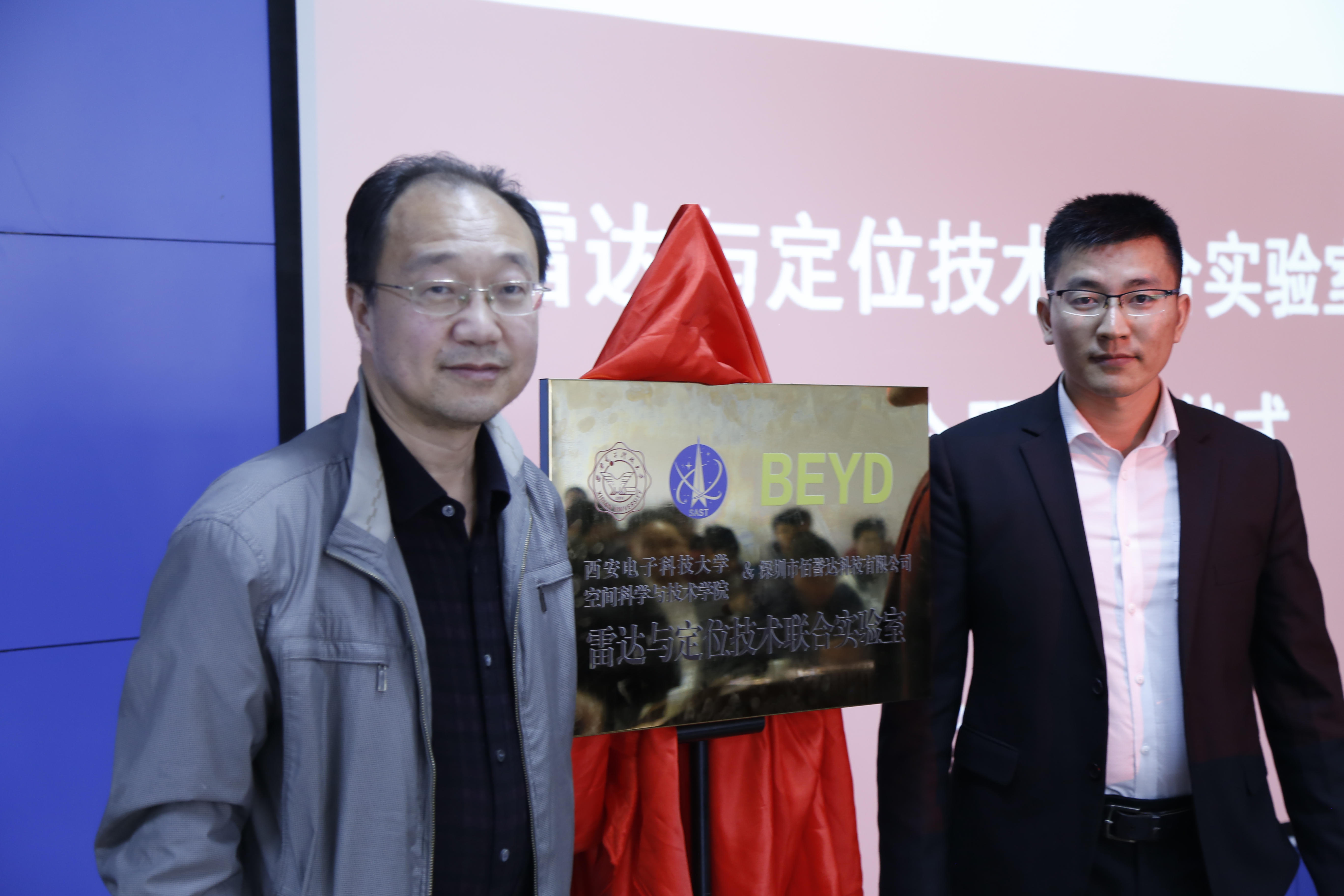4月11日下午,由深圳佰誉达科技有限公司与空间科学与技术学院共建的“雷达与定位技术联合实验室”的成立大会暨揭牌仪式在南校区G240报告厅隆重召开。深圳市佰誉达科技有限公司总经理陈永茂、副总经理黄仁值 、销售经理丁宾,空间科学与技术学院党委书记、梁玮 ,副院长刘彦明教授、导航控制系主任许录平教授、院长助理冯冬竹副教授、测控通信系系主任谢楷教授、探测制导导主任闫允一副教授、导航系教师张华副教授以及全院师生代表100余人参加了仪式。