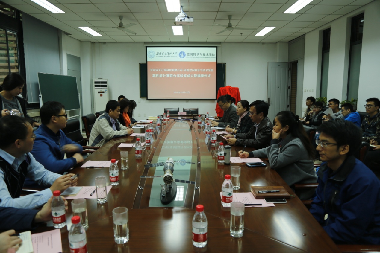 10月25日上午,西安电子科技大学空间科学与技术学院高性能计算联合实验室成立暨揭牌仪式在南校区G251会议室隆重举行。北京容天汇海科技有限公司总经理马志谦先生、空间科学与技术学院执行院长李小平教授、副院长刘彦明教授、博导黄柏铭教授及空间学院师生代表60余人出席揭牌仪式并听取报告。