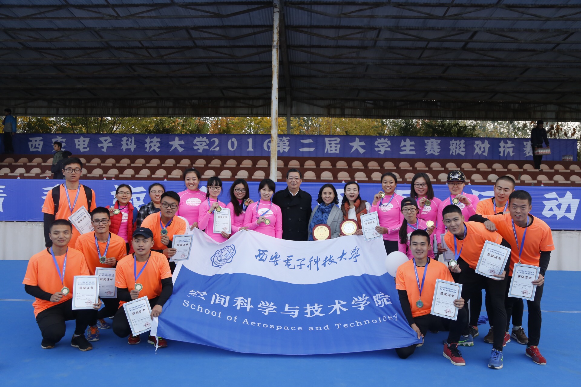 2016年11月12日,西安电子科技大学第二届赛艇对抗赛在位于杨凌的陕西省水上运动中心举行。在此次比赛中,空间院的运动健儿们斩获一金一银,获得女子组冠军,男子组亚军的优异成绩!