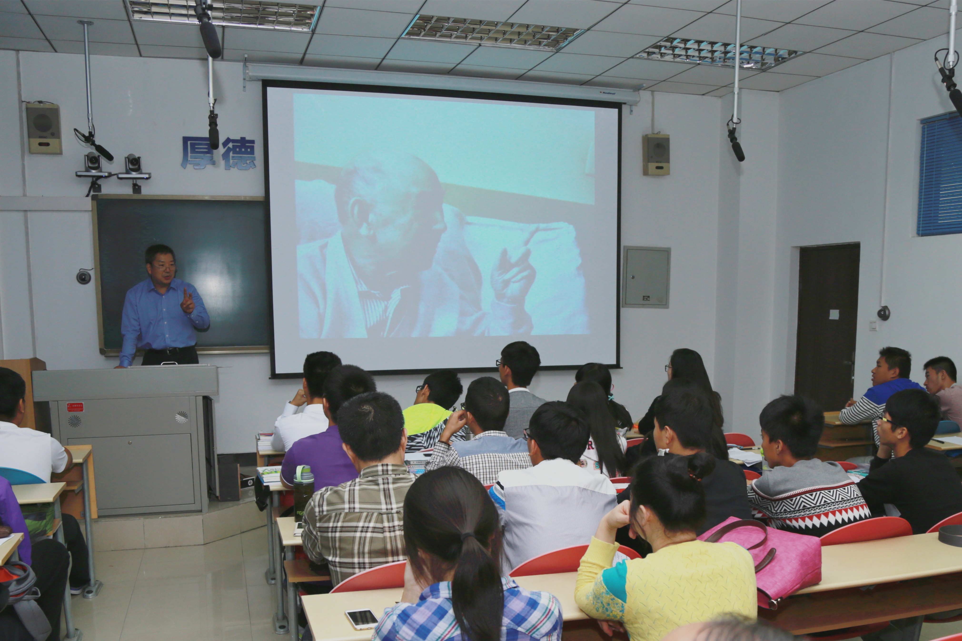 顾吉环首先介绍了总装钱学森办公室的概况,作为钱学森秘书十几年的耳闻目儒,深得体会。讲述从钱学森人生重要的三个阶段、五次选择向大家呈现了钱学森的求学、科研、报效祖国的历程。钱学森中学毕业后抱着“学习知识、贡献社会、报效国家”选择专业学习,从铁路机械到航空工程,决定了他一生的发展轨迹。在美国求学期间,他始终铭记“学成本领后,救国于水火,青青然而归,灿灿然而返”的教诲,刻苦学习,勤奋思考,勇于创新,奠基了他一生的学术成就。新中国成立不久,钱学森就萌生了回去建设新中国的想法,彻底放弃荣华富贵,历尽艰难辗转回国,投身到我国的航天事业,为“两弹一星”、航天事业作出了杰出贡献。课堂上,顾吉环为大家播放了许多珍贵的材料、手稿、图片等,生动地通过一个个故事阐述着钱学森的爱国情怀和科学报国精神,一页页精美的手稿、一幅幅动人的画面、一个个回忆的瞬间,使老师和同学们发出阵阵赞叹和由衷敬意。课堂最后,顾吉环指出:今天我们讲述钱学森、缅怀钱学森,是要大家思考学习为什么、活着为什么的命题,作为钱班学生如何让这个称号添光加彩、灼灼生辉,成长为钱学森事业的接班人。