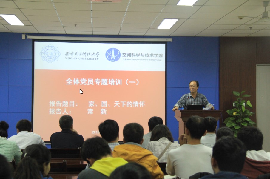 9月30日下午,空间科学与技术学院举行全体党员本学期第一次培训,人文学院常新教授做了名为“‘家,国,天下’的情怀”的报告,我院大部分党员参加并认真学习了作为新青年在新时代我们所应肩负的家国责任。培训由院党委书记梁书记主持。