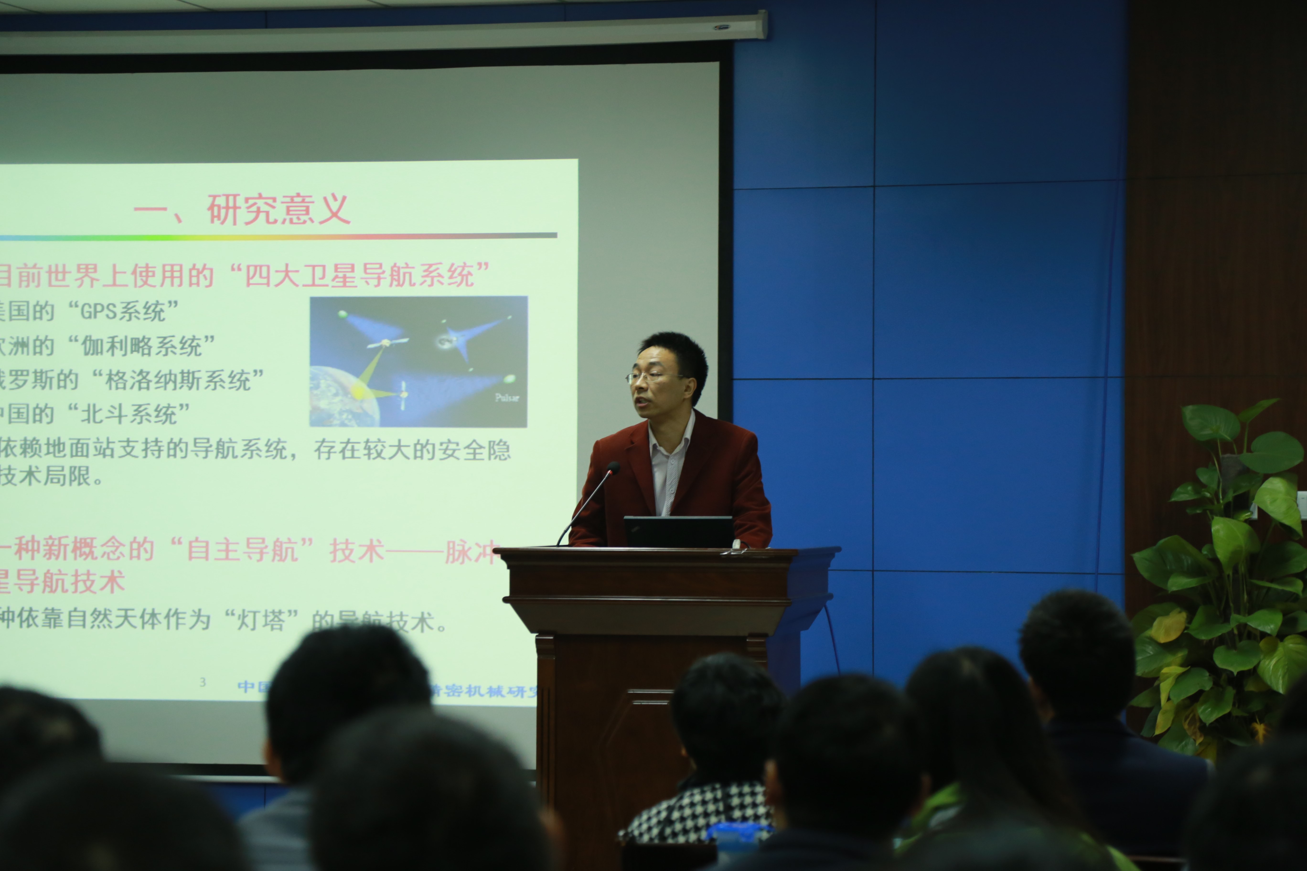 赵宝升研究员作题为“基于X射线脉冲星导航的地面实验系统”的报告