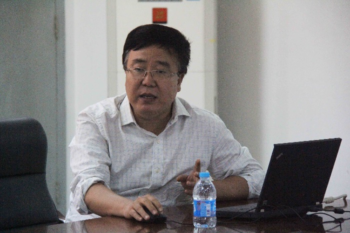 王松林介绍了我院2014年新立项的教改项目和教学团队,并对下半年的教学工作进行部署,要求“老教授带头,新教师参与”——一个团队负责好一门课程的教学。