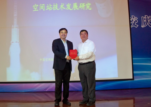 报告会上,杨宏向大家介绍了中国载人航天工程和国际空间站的发展历史。他告诉在座的同学和老师们,中国的载人航天工程有“三步走”的发展战略。首先,通过发射几艘无人试验飞船和有人飞船,将航天员送入近地轨道并安全返回;然后研制和发射空间实验室,建立完整配套的空间站工程大系统,实现一定规模的空间应用;最终目的是建造长期有人的大型空间站。他说,从“神舟号”飞船的发射再到天宫一号实现首次空间交互对接,我国的载人航天技术已经发展到二期工程阶段。