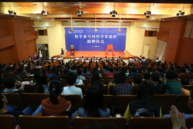 上海交通大学钱学森图书馆馆长钱永刚教授、中国航天科技集团公司科技委主任包为民、中国人民解放军总装备部钱学森办公室顾吉环、钱学森研究会专家陈大亚、陕西省教育厅副厅长郭立宏,以及学校党委书记陈治亚、校长郑晓静院士共同为西安电子科技大学“钱学森空间科学实验班”揭牌。