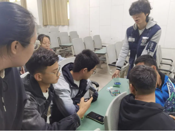 彭宇坤为在场学生介绍了各类嵌入式开发板和微处理器的概念、结构和分类,并通过拆解与组合详细讲解了传统微处理器的组成和用途,他借助实例分析,说明了运算器、控制器、寄存器等不同组成部分的功能。与此同时,他对比分析了Verilog和VHDL两类硬件编程语言的优劣势,同时介绍了多种编程软件。在交流环节,彭宇坤利用嵌入式开发板实物现场操作并组织在场学生动手实践,相互探讨切磋,整个过程热烈融洽。