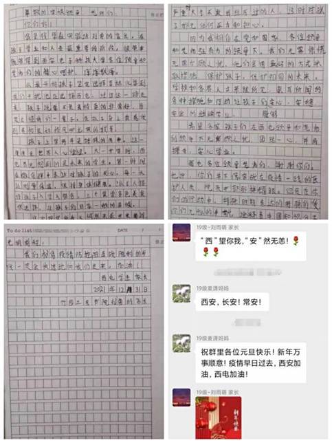 “我们无须惊慌,无需后顾之忧,他们会用最好的方式采取措施,保护孩子、保护祖国的未来”“希望各位孩子在西电领导和老师的领导之下,团结一心、并肩携手、安心学业。”作为经历过武汉疫情的家长,空间院钱学森班刘勇的母亲满怀特殊的心情写下一封亲笔家书,以诚挚的文字,书写对学校、学院的信任与感谢。信中真诚质朴的话语,温暖了诸多学子,增添了更多信心。