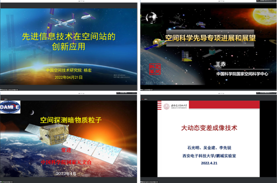 (通讯员 李欢 郭敏)4月21日上午,在第七个“中国航天日”即将到来之际,空间科学与先进探测技术专题论坛暨西安电子科技大学第六届航天文化节开幕。本次论坛由鹏城实验室控制与网络基础研究室主办、西安电子科技大学空间科学与技术学院承办。中国航天科技集团有限公司科技委主任、西安电子科技大学空间科学与技术学院院长包为民院士,中国空间站系统总设计师杨宏院士,中科院国家天文台台长常进院士,中科院国家空间中心主任王赤院士,中科院国家天文台南京天文光学技术研究所崔向群院士,西安电子科技大学党委书记查显友,鹏城实验室副主任石光明教授出席论坛。还有来自中国航天科技集团、鹏城实验室、国家天文台、上海天文台、南京大学、哈尔滨工业大学、钱学森空间技术实验室以及西安电子科技大学的100余位专家学者和1000余名西电师生线上参加活动。