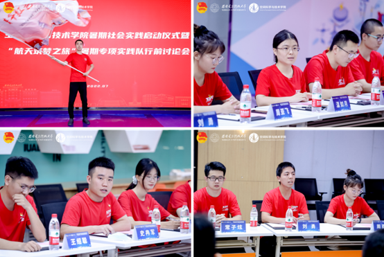 “此次‘航天筑梦之旅’南京之行,令我最为期待的当属‘校友微访谈’环节,能够与众多优秀校友面对面交流学习,并从中体悟西电精神、汲取成长经验、了解行业发展、收获前进动力,我认为是我们作为新时代西军电人的‘必修科目’,也是我们每一位西电青年的‘实践金课’,相信此次实践活动必将会是一段难得、难忘的宝贵经历。”在7月21日举行的空间科学与技术学院2022年暑期社会实践启动仪式暨“航天筑梦之旅”暑期专项实践队行前讨论会上,学院研究生会成员、2021级硕士研究生温如月分享了个人对于此次实践活动的行前规划。会上,校团委副书记华俊文向实践队师生寄语“在聆听与观察中经受教育、在交流与见习中增长才干、在寻访与躬行中做出贡献”并向实践队员代表孙泽阳授旗。空间学院党委书记朱伟在讲话中表示,希望实践队师生牢记习近平总书记给第三届中国“互联网+”大学生创新创业大赛“青年红色筑梦之旅”的大学生的回信精神,在社会实践的“思政课堂”中赓续红色基因、传承西电精神、体悟时代脉搏、明确历史责任、展现蓬勃朝气、贡献青春智慧,为建设“新时代西军电”凝聚奋进力量,以优异成绩迎接党的二十大胜利召开。