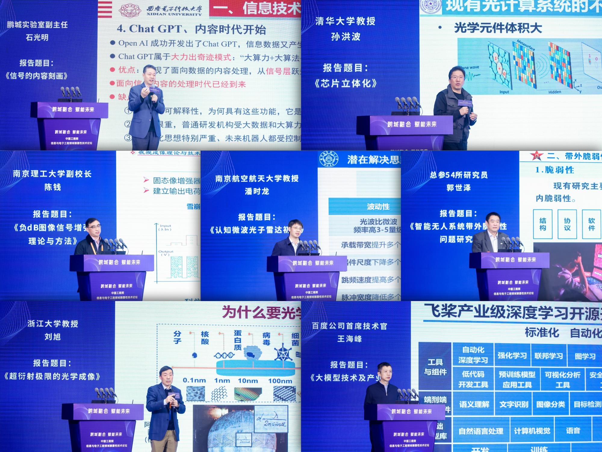 鹏城实验室副主任石光明教授、清华大学孙洪波教授、南京理工大学副校长陈钱教授、南京航天航空大学潘时龙教授、总参54所郭世泽研究员、浙江大学刘旭教授、百度公司首席技术官王海峰作主题报告。