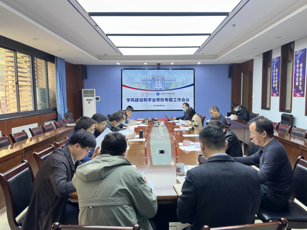 (通讯员 范雪琦)为切实提高学院本科教育教学质量,加强学院学风建设,深化本科生“全员导师制”工作成效,3月25日,空间科学与技术学院召开学风建设和学业帮扶专题工作会议。学院领导班子、党委委员、系主任、科级干部参加会议,会议由学院党委书记朱伟主持。