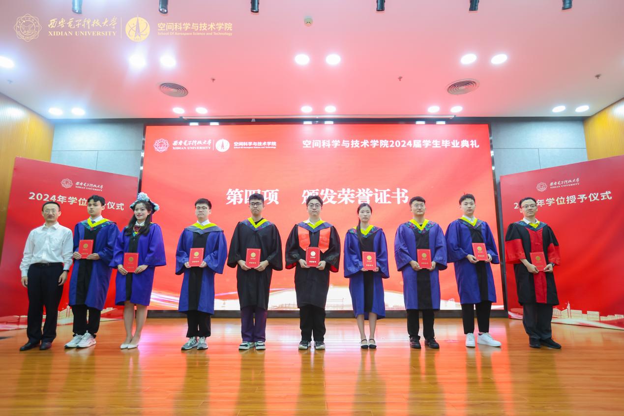 研究生毕业生赵迎新和本科毕业生杨国强作为学生代表分别分享了自己的毕业感受。他们表示,时代赋予了西电学子新的使命,建设航天强国的“动员令”赋予了空间学子新的力量。今后将会在“厚德、求真、砺学、笃行”的校训和“胸怀祖国、勇于探索、知行合一、团结协作”的学院精神的指引下勇毅前行,续写和创造更多属于西电人的荣光。