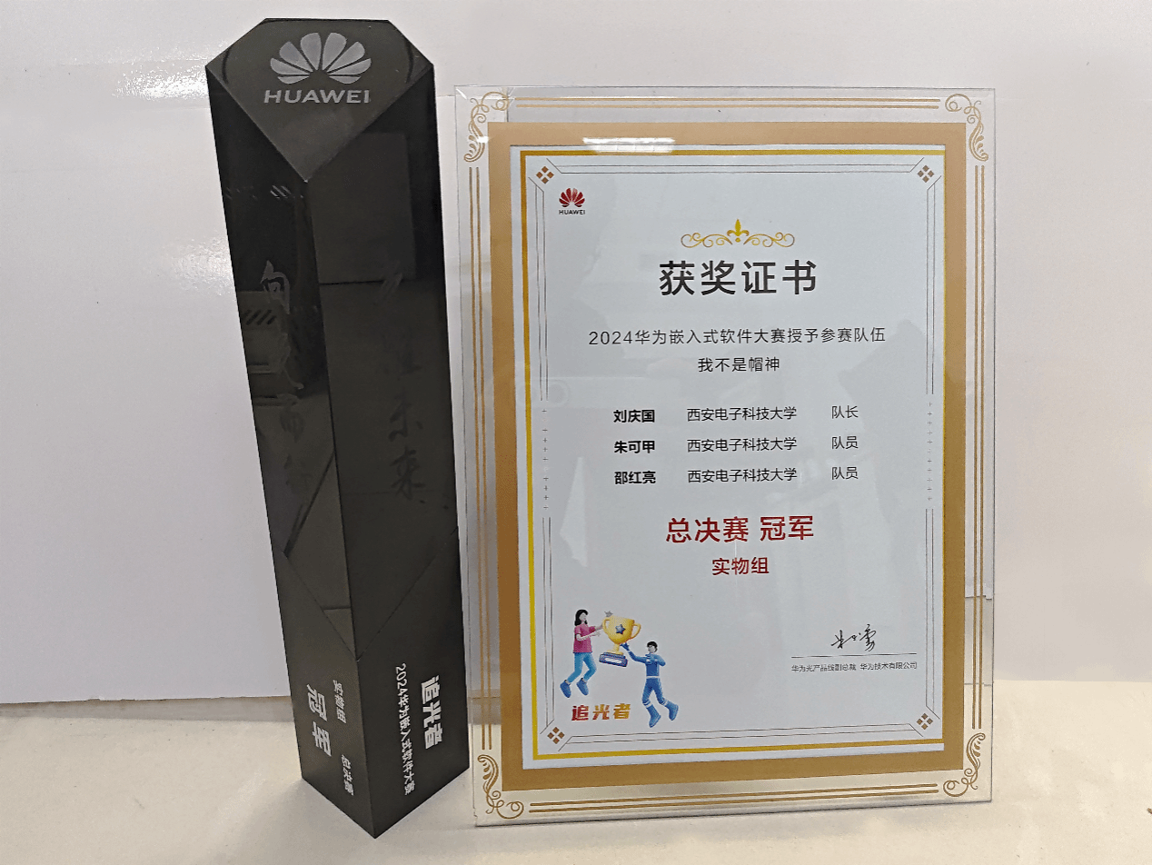 (通讯员:朱娟娟)8月3日,2024华为嵌入式软件大赛全国总决赛在松山湖华为欧洲小镇举办。西安电子科技大学空间科学与技术学院参赛队“我不是帽神”荣获全国总决赛冠军。参赛队伍由22级研究生朱可甲、邵红亮和23级研究生刘庆国组成,项目指导教师为郭宝龙教授。华为公司竞赛管理部部长王爱猛,华为光产品线研发管理部HRD郑旭阳参加总决赛颁奖典礼并为获奖学生颁奖。