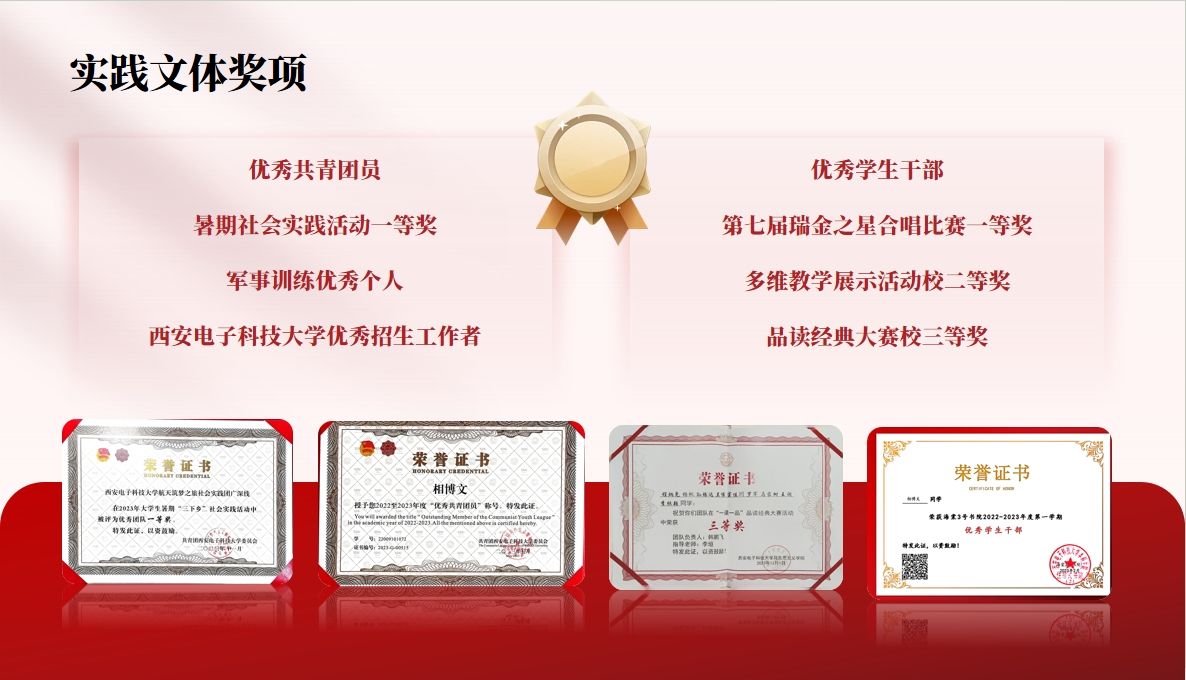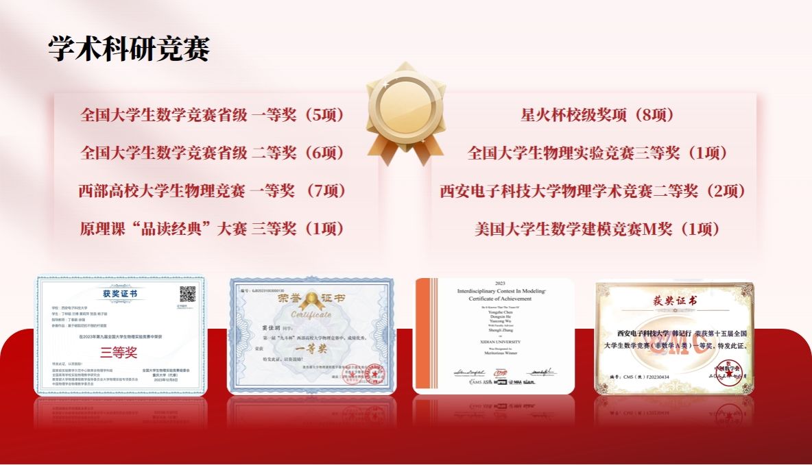 学业成绩优异,全面发展。2216029班全员配备学业导师,量身定制导学方案,涵盖学涯规划、科技创新、学科竞赛等多维度活动载体。班级竞赛参与率100%,四级通过率100%,大二学年M2均分高达99.5分,7人次获得国家奖学金和国家励志奖学金。获得国家级以上奖项22项,省部级奖项68项,校级奖项78项,筹备发表高水平论文2篇。班级成员多次获得优秀学生、优秀学生干部等荣誉称号。班级坚持五育并举,同学们积极参加西军电杯、金话筒杯等实践文体活动并屡获佳绩。