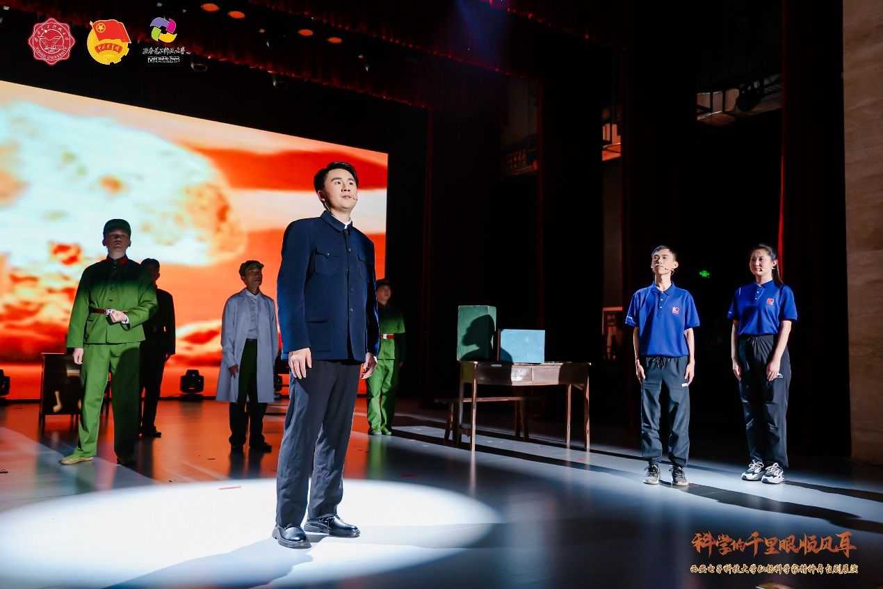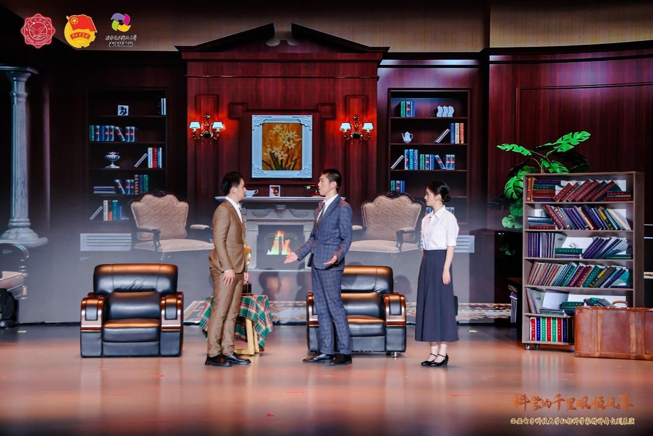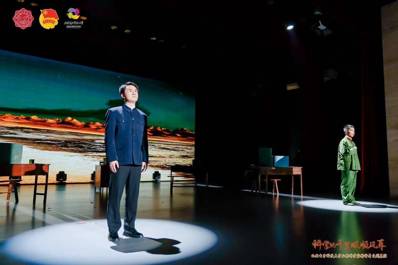 舞台剧《扶摇》是西安电子科技大学弘扬科学家精神师生原创系列微话剧之一,也是学校“科学的千里眼顺风耳”微话剧展演活动首次出演的话剧之一。该剧以钱学森为人物原型,演绎了老一辈科学家、教育家为实现科技自立自强而奋斗的动人事迹。经前期人物征集、脚本撰写、剧本论证、演员招募、排练演绎、彩排呈现等环节,零基础的学生演员们耗时月余,从“一无所有”开始推敲台词、训练仪态、精进演技,最终完美展现了老一辈科学家的家国情怀与使命担当。