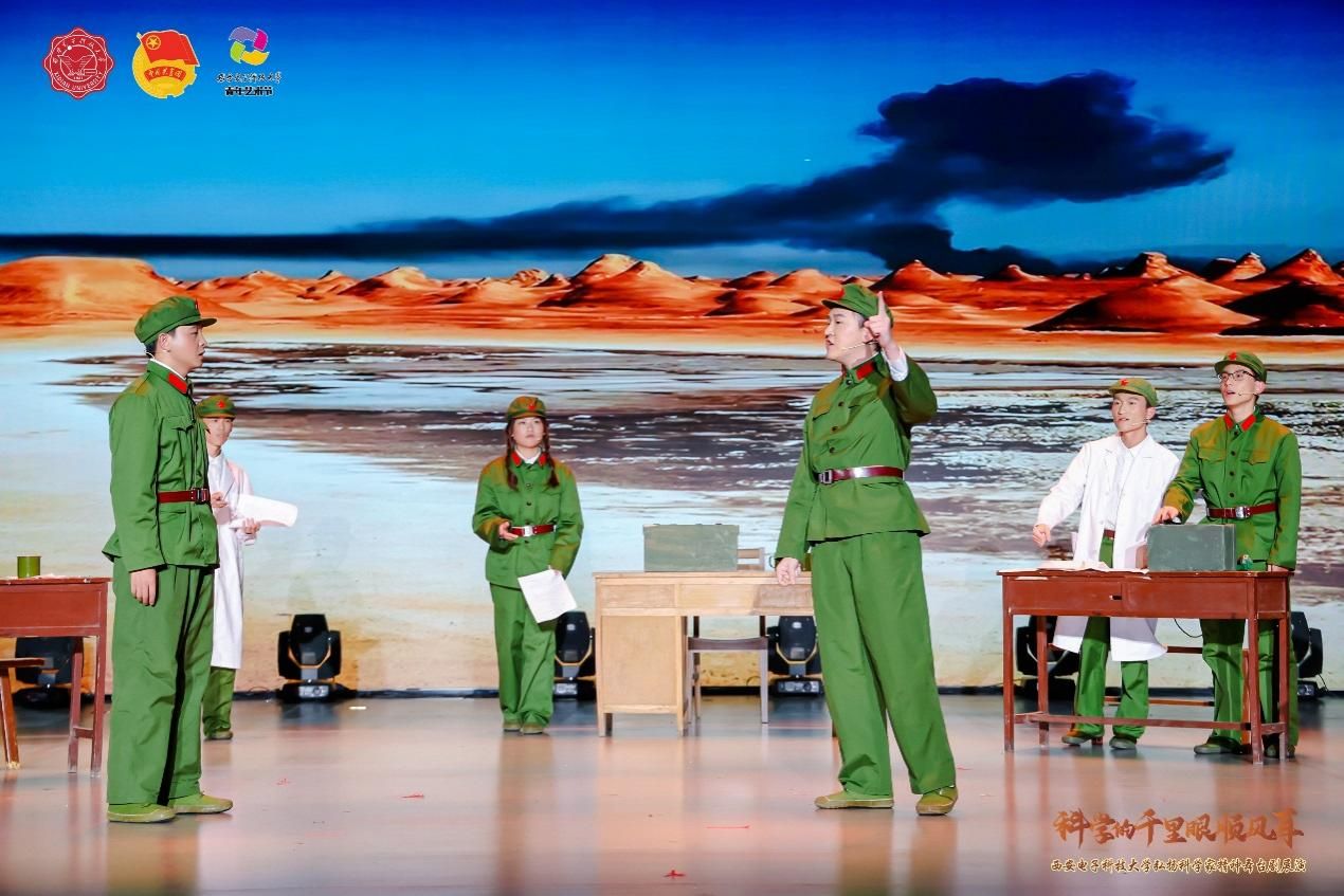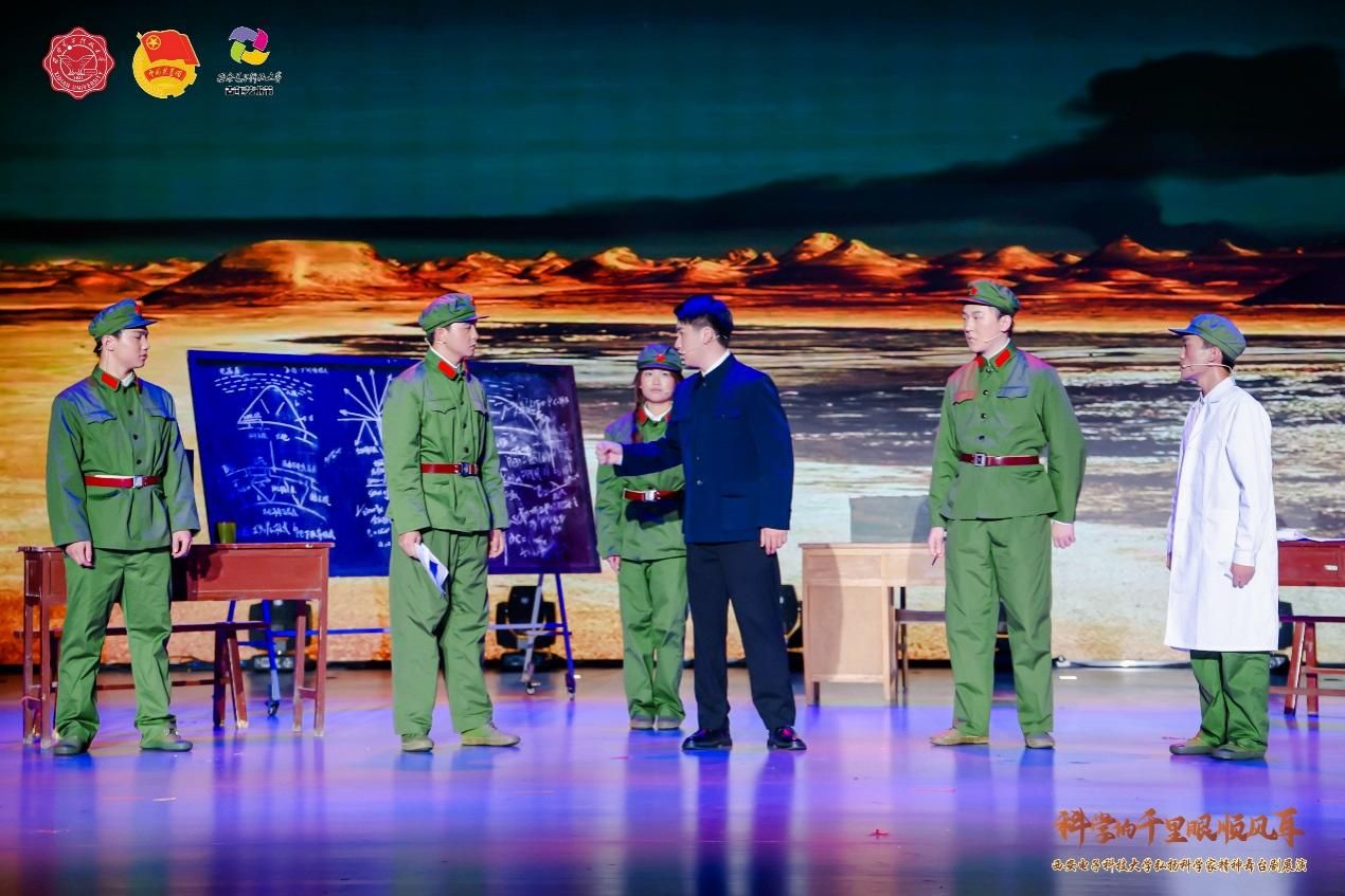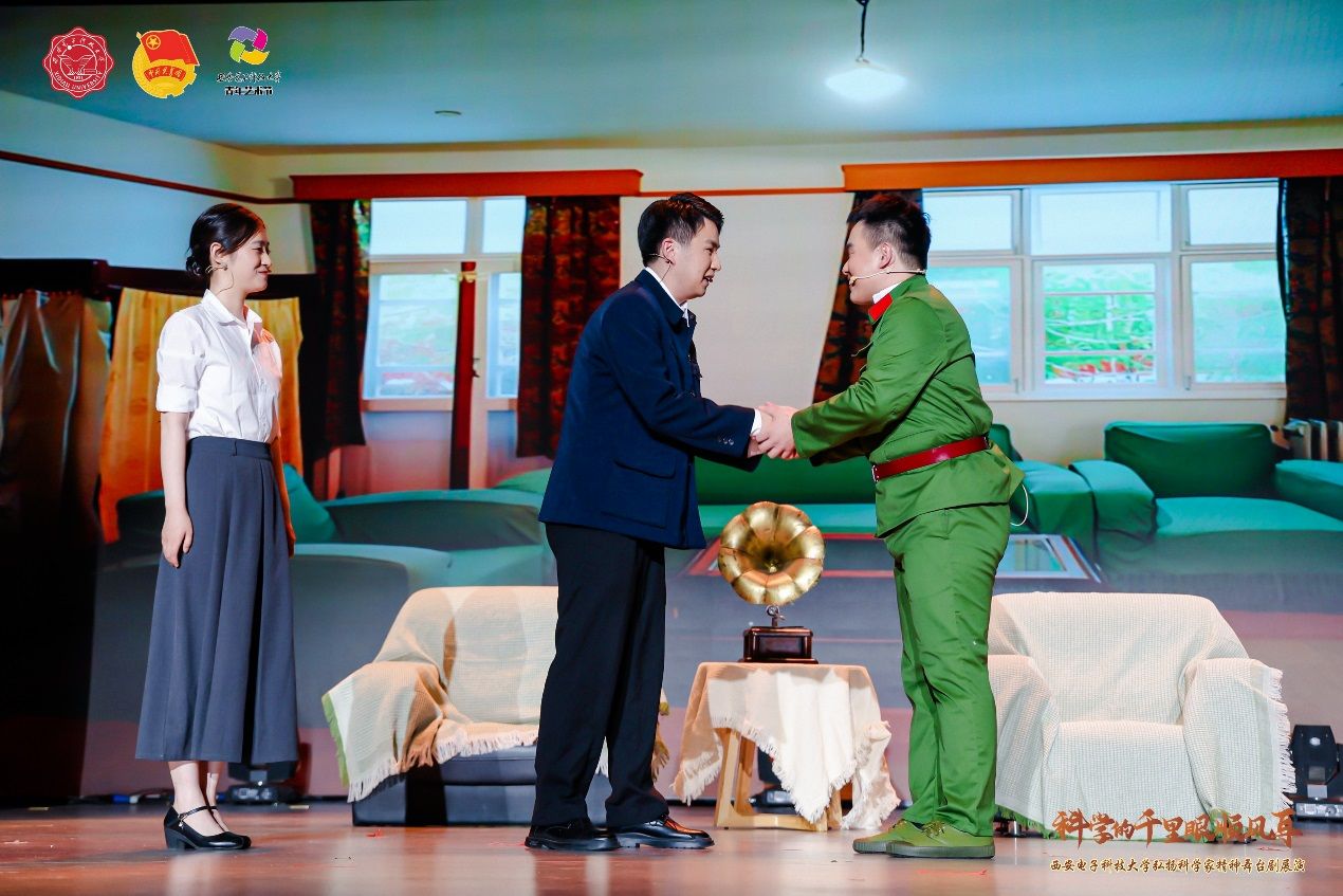 舞台剧《扶摇》是西安电子科技大学弘扬科学家精神师生原创系列微话剧之一,也是学校“科学的千里眼顺风耳”微话剧展演活动首次出演的话剧之一。该剧以钱学森为人物原型,演绎了老一辈科学家、教育家为实现科技自立自强而奋斗的动人事迹。经前期人物征集、脚本撰写、剧本论证、演员招募、排练演绎、彩排呈现等环节,零基础的学生演员们耗时月余,从“一无所有”开始推敲台词、训练仪态、精进演技,最终完美展现了老一辈科学家的家国情怀与使命担当。