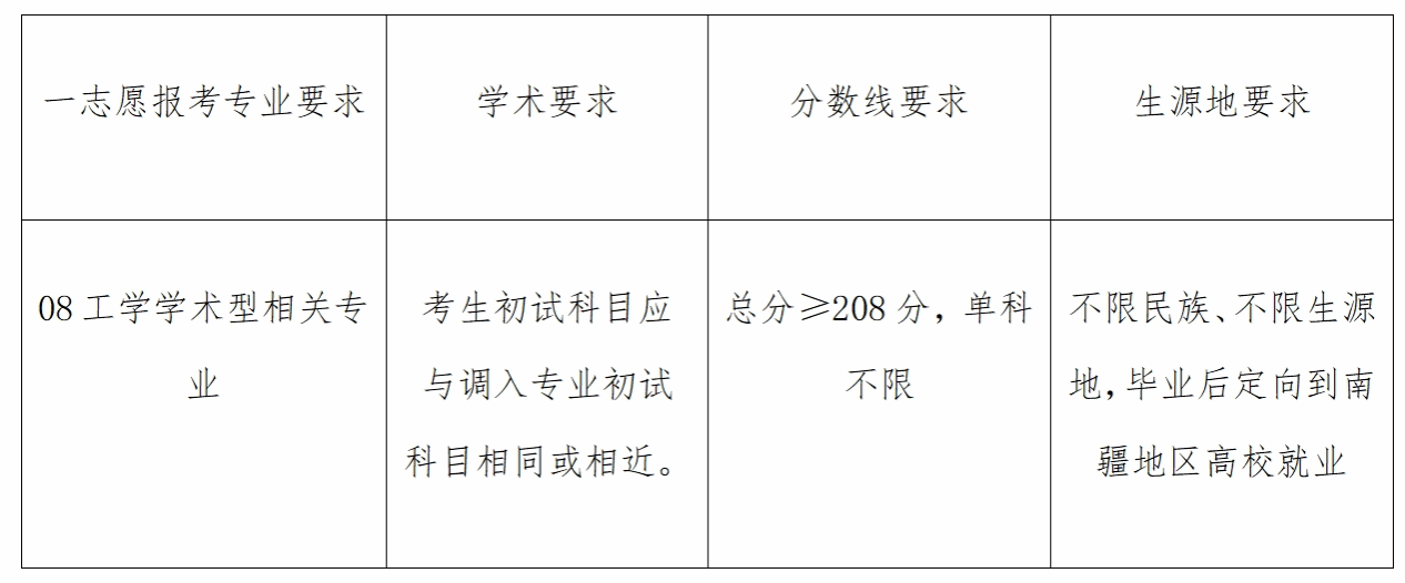 因学校指标调整,现追加1个学术学位硕士研究生“少数民族高层次骨干人才计划”南疆高校教师专项指标至081100控制科学与工程专业,拟接收调剂生。请拟申请调剂的考生在我院调剂系统开放时间段内登陆中国研招网调剂系统报名。
