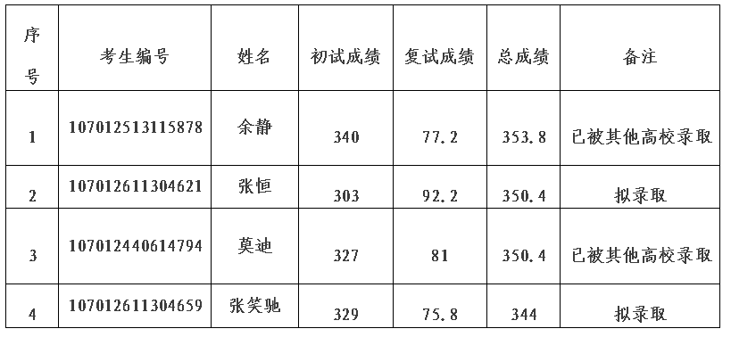 因学校指标调整,现追加2个电子信息专业招生计划,根据空间科学与技术学院硕士研究生复试录取办法,现按照电子信息专业一志愿考生总成绩排名顺次递补,公示结果如下: