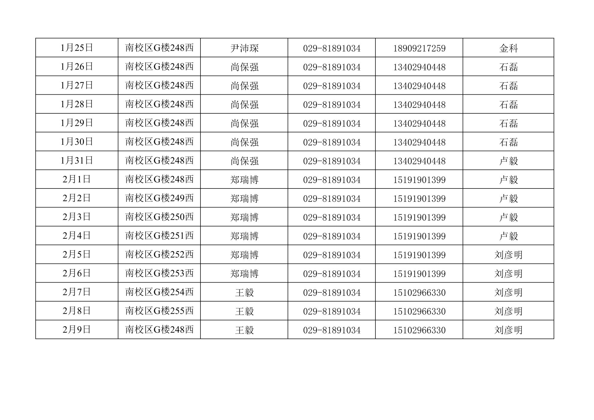 空间科学与技术学院2023年寒假值班安排表