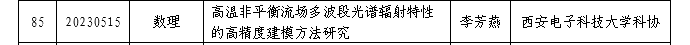 (通讯员 尚保强)日前,陕西省科协发布2023年陕西省科协青年人才托举计划项目评审结果,西安电子科技大学空间科学与技术学院青年教师李芳燕申报的项目“高温非平衡流场多波段光谱辐射特性的高精度建模方法研究”成功入选。这也是自2020年以来,空间院连续4年有青年教师入选该计划。青年人才托举计划的成功获批,是对学院科研发展环境及人才培育工作的充分认可,有利于激发青年教师的创新活力并进一步促进青年人才成长。