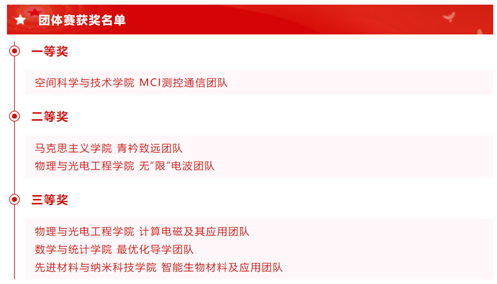 (通讯员杨敏 董银娜)在中国共产党迎来百年华诞之际,为激发团队师生对百年党史的学习热情,激励团队师生传承和发扬革命精神,空间科学与技术学院测控与通信导学思政团队(MCI)在李小平教授和刘彦明教授的带领下积极开展党史学习交流活动,踊跃参加校级研究生党史知识竞赛。6月24日下午,研究生党史学习教育知识竞赛决赛在西电北校区会议中心104报告厅顺利举行, MCI导学团队经过初赛、复赛的层层选拔,脱颖而出闯入决赛,并在决赛中斩获团体赛第一名。