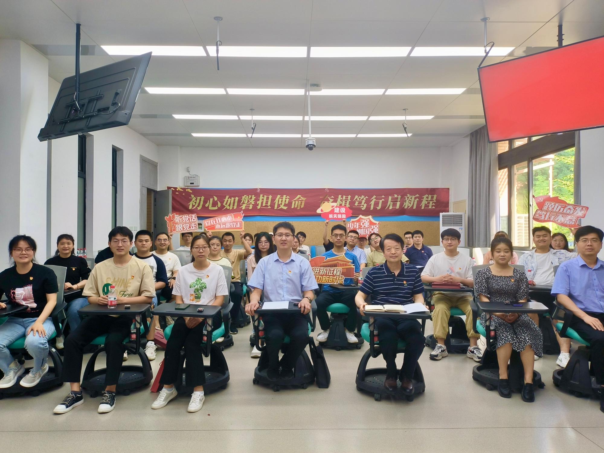 (通讯员:刘思奇)为扎实推进学习贯彻习近平新时代中国特色社会主义思想主题教育,进一步加强毕业生党员的党性修养,6月14日下午,空间科学与技术学院在C楼117教室开展“初心如磐担使命,奋楫笃行启新程”主题党日活动,学院党委书记朱伟、导航控制系教职工党支部教师代表、导航控制系研究生党支部全体党员及2023届优秀毕业生代表近40人参加活动。活动由导航控制系研究生党支部书记于悦洋主持。