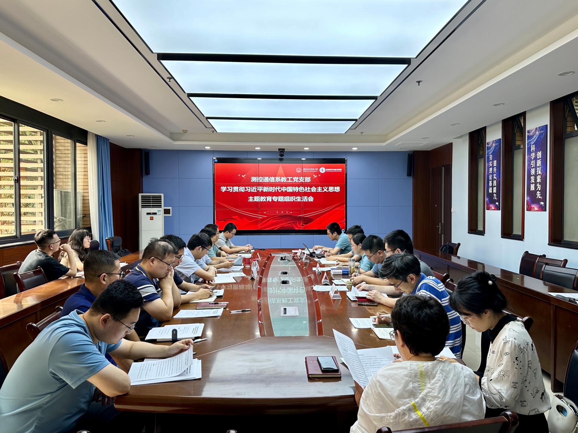 (通讯员 范雪琦)为进一步推动学习贯彻习近平新时代中国特色社会主义思想主题教育走深走实,按照校党委统一部署,9月1日下午,教育部“全国党建工作样板支部”创建培育单位测控通信系教职工党支部召开学习贯彻习近平新时代中国特色社会主义思想主题教育专题组织生活会。教育部派驻学校党建联络员冯旭东到会指导,空间科学与技术学院党委书记朱伟参加会议,校内教师党支部书记代表到场观摩,会议由支部副书记白博文主持。