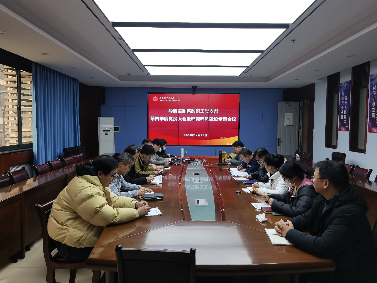 (通讯员 王光敏)为深入学习贯彻习近平总书记关于教师队伍建设的重要论述,落实立德树人根本任务,大力弘扬教育家精神,以高质量师德师风建设引领高质量教师队伍建设,2023年12月28日下午,空间科学与技术学院导航控制系教职工党支部召开党员大会暨师德师风建设专题会议。会议由导航控制系教职工党支部书记、系主任戴浩主持,导航控制系全体教师参加会议。