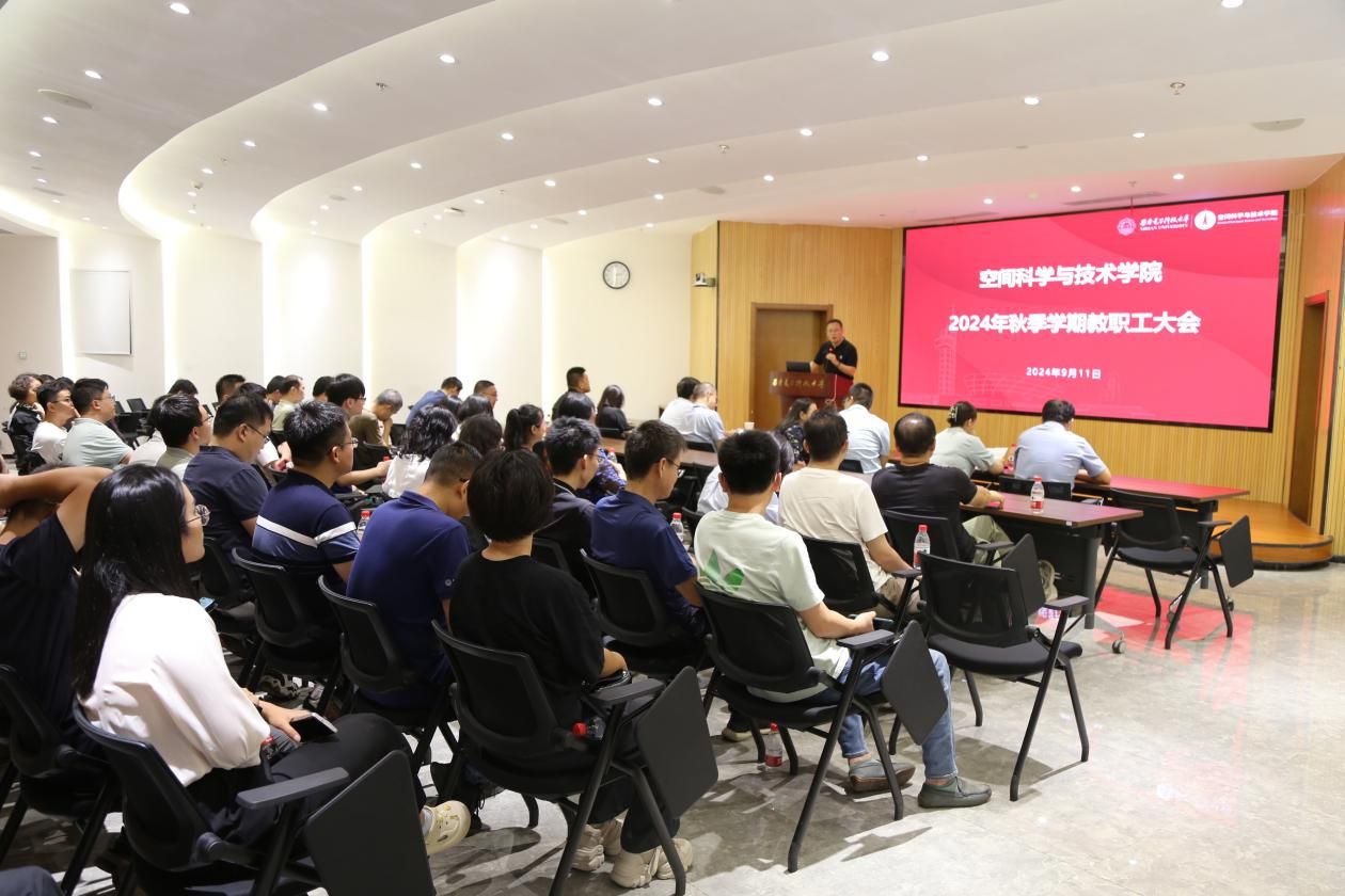 为了进一步加强学院建设,凝聚教师队伍,9月11日下午,空间科学与技术学院在南校区会议中心101报告厅召开全体教职工大会,认真学习党的二十届三中全会和全国教育大会精神,传达学校2024年下半年工作会议精神,学院班子成员和全体教职工参加会议,会议由学院党委副书记卢毅主持。