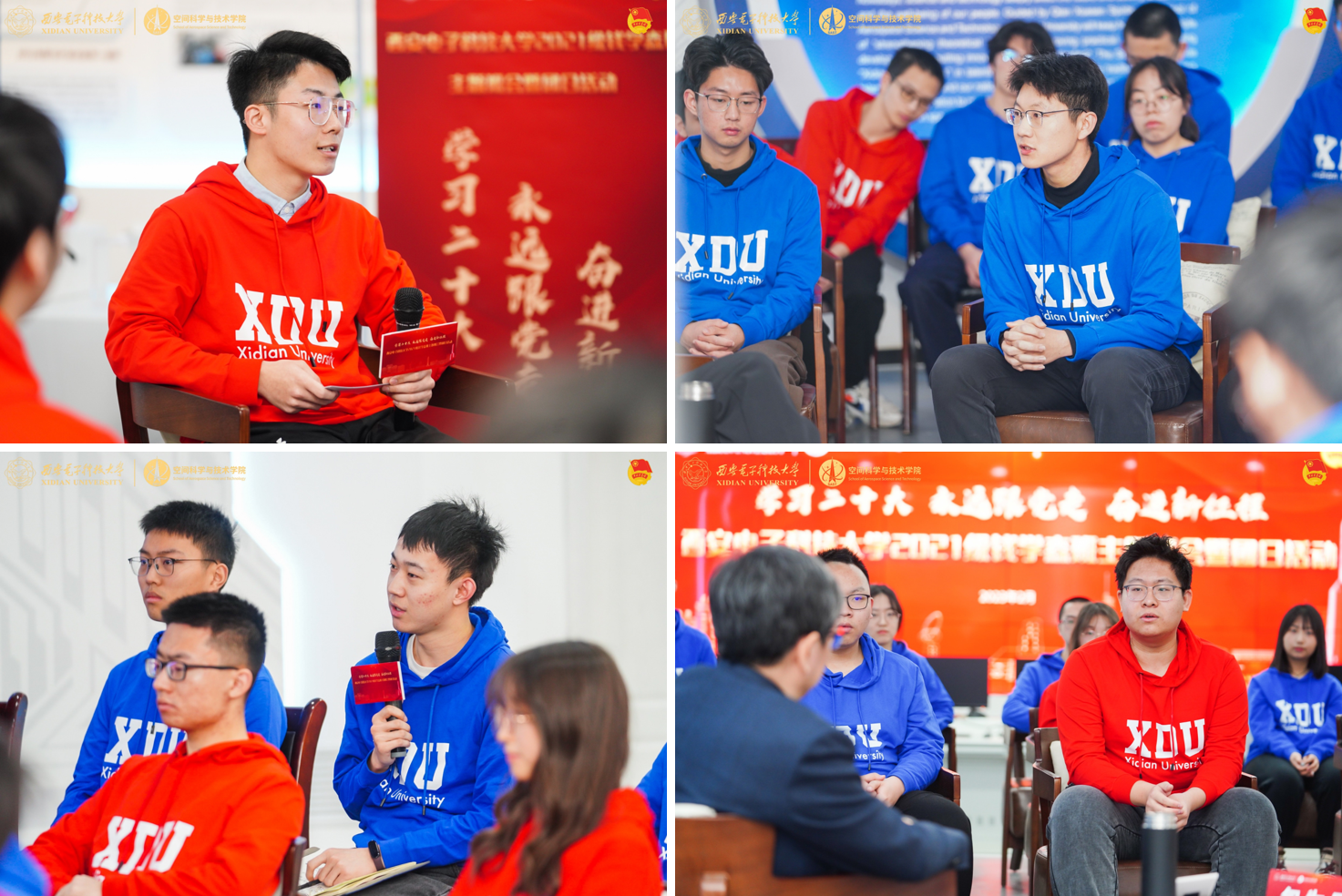 与会学生代表结合个人成长经历分别进行了发言,钱班学生金荣杏谈到“从初中起我便萌生了未来投身航天领域的想法,在不断了解我国航天事业发展的过程中,我当初的小想法逐渐变为了大目标,因此我在来到西电后选择加入了钱学森班,我希望在这里一步步实现自己的航天梦。与此同时,航天的‘归零精神’也不断激励着我迎难而上、直面挫折,我想这将是推动我不断追寻梦想的强大动力。”钱班学生户昱炜分享了自己参与科创竞赛的别样经历,“上学期我与团队共同研发的离子体应用产品参与到了学校星火杯科创竞赛中,等离子体是一个我们从未接触过的领域,化学、物理等多学科交织融合。在一个完全零基础的方向探索,我们逐渐发现了科技创新的有趣之处,未来我希望发挥自己的个人所学打造更多的科创作品,投身到科技创新的时代浪潮中。”2021级探测制导与控制技术专业学生韩霖讲述了自己与西电的故事,“年少时我便认识了西电,因为我的父亲也是一名西电学子,1995年他从西电通院毕业后便一直在通信行业工作,在父亲的支持和鼓励下,高考填报志愿时我也选择了西电。在西电,广阔的舞台极大地拓宽了我的眼界,点燃了我的激情。未来,我将在学习过程中打牢数理基础,强化工科思维,努力成长为综合素质全面的空间电子信息拔尖创新人才。”2021级硕士研究生赵迎新回顾了自己两度参与学院暑期社会实践专项团队的难忘历程,“2021年我和团队前往学校发源地江西省瑞金市开启‘寻根’之旅,在小布祠堂探寻红色电波传遍大江南北的前世今生,2022年我们前往江苏省南京市共赴‘航天筑梦之旅’,在紫金山天文台领略浩瀚太空的缤纷色彩,两次社会实践让我在行走课堂中进一步明确了新时代西军电人的责任与使命,也让我更加坚定了科技报国的信心与决心。”在分享个人收获和未来规划的同时,同学们也就学院的学科发展、师资队伍、课程设置、实习实践、后勤保障等方面积极建言献策。